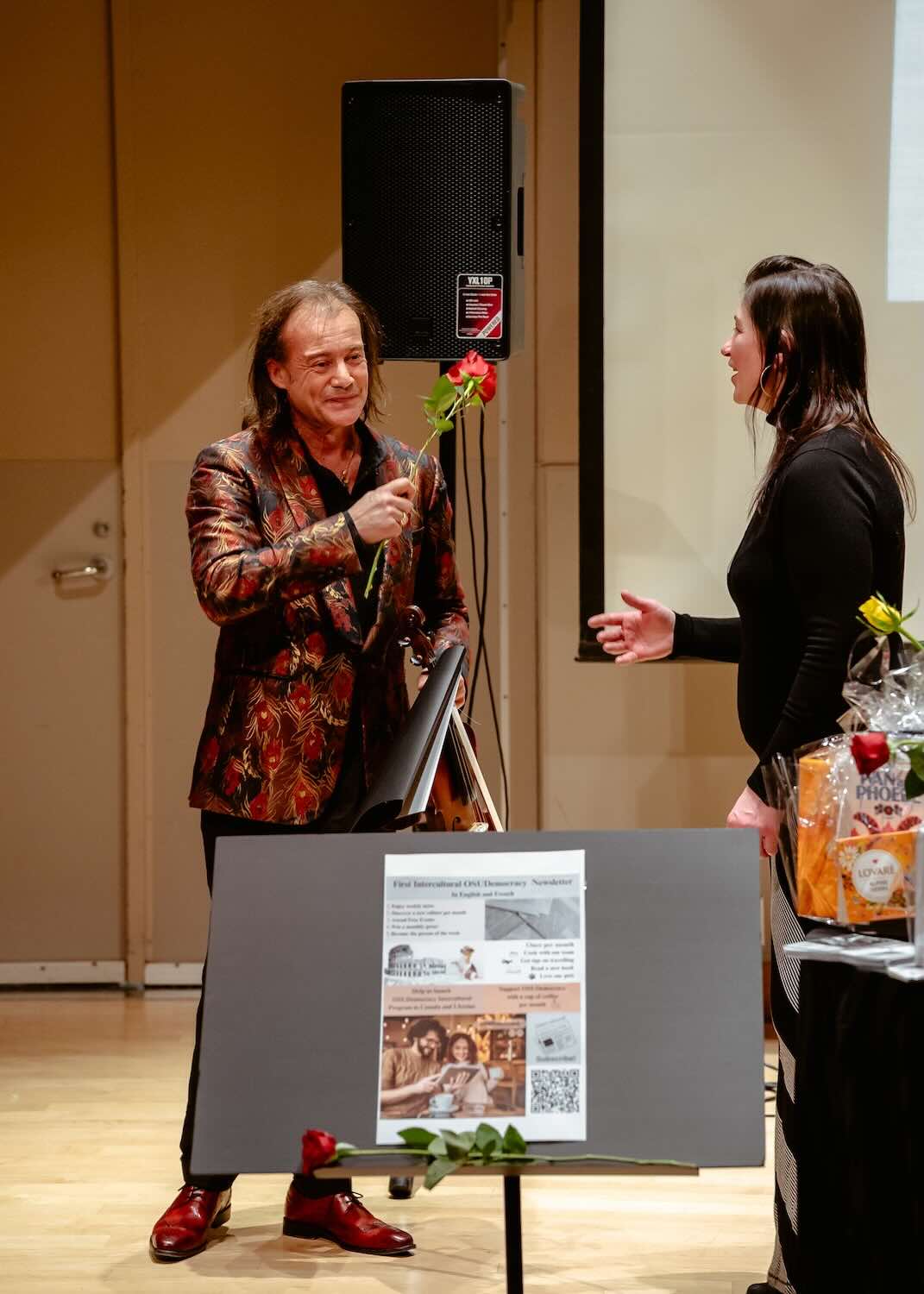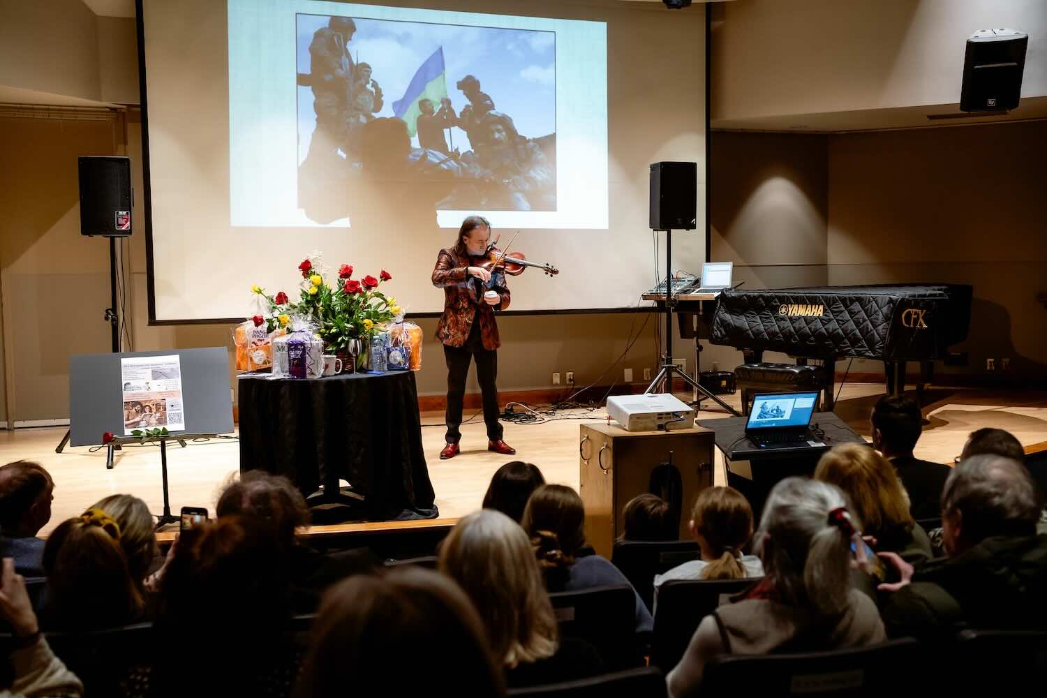 - Vasyl Popadiuk, the Ukrainian musical prodigy, shared a deeply emotional performance on the violin. His story reflects the high cost of standing for freedom: as a child during Soviet times, his father was imprisoned because Vasyl drew a Ukrainian trident at school. Today, in the wake of Russia’s full-scale invasion of Ukraine, he mourns the loss of his brother and close family friend, Dr. Dmytro Serbin, who was killed by a Russian sniper while giving first aid to a Ukrainian soldier. Vasyl’s music spoke of grief, hope, and the resilience of the human spirit.