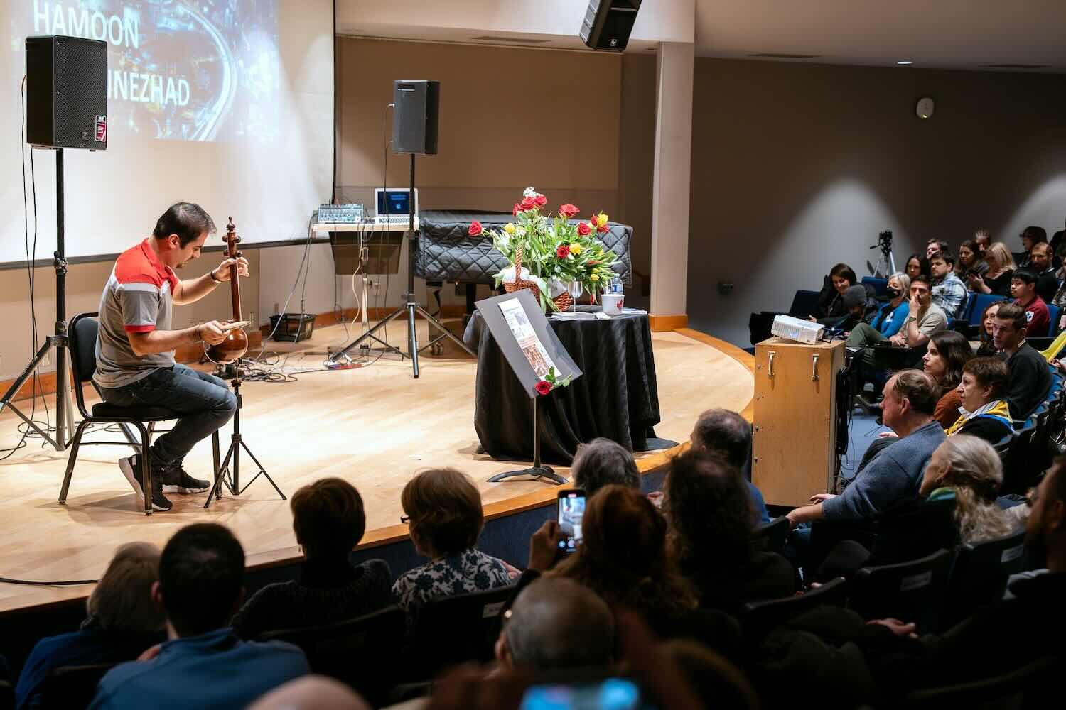 - Hamoon Hasannezhad performed traditional Iranian music on the Kamancheh, transporting the audience to pre-revolutionary Iran and offering a glimpse into life before and after the rise of the authoritarian Islamic regime. His performance underscored the value of democracy and reminded us that the first victims of its absence are often women.